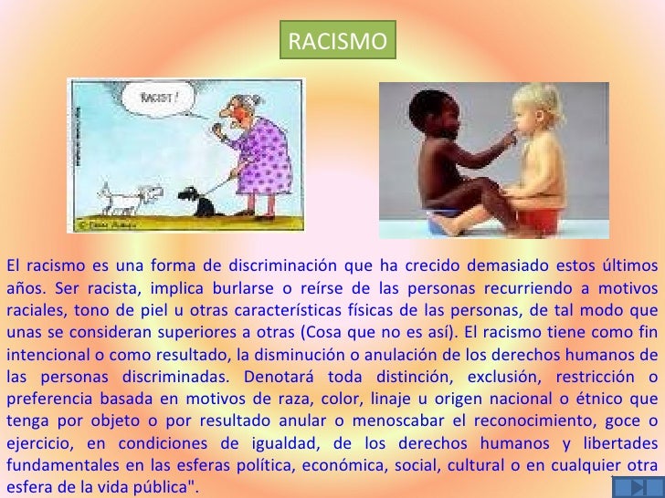- discriminación (racial, de genero, posición social, religioso..etc)